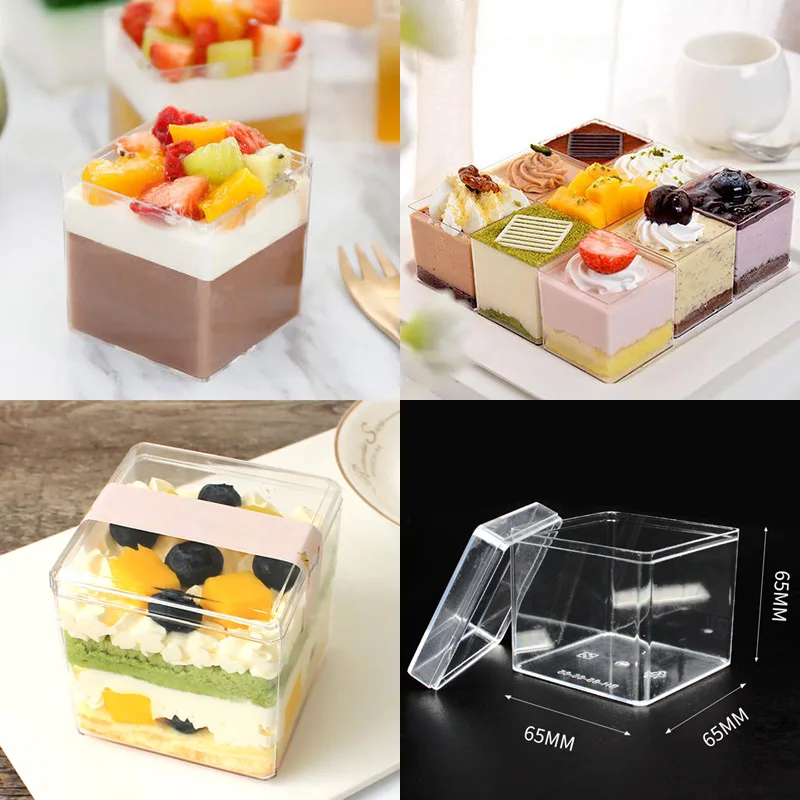 25pcs Square Transparent Cake Dessert Cup Small Packaging Ice Cream Pudding Jelly Plastic Box Wedding Party Favors Cup With Lid Disposable Cups Aliexpress
